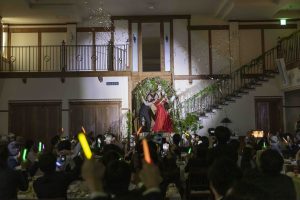 ライトに照らされながら階段からのリメイク入場!