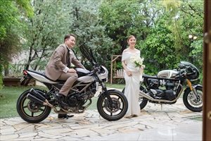 新郎様はバイクにまたがった状態で エンジン音が