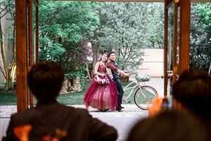 おふたりの出会いに関連した自転車での入場